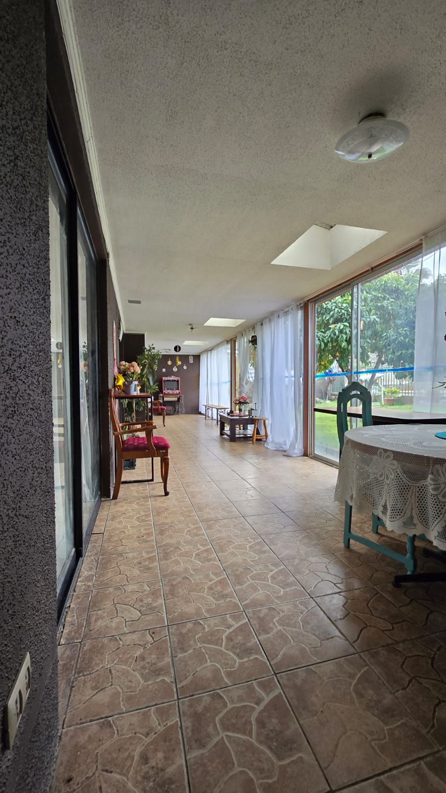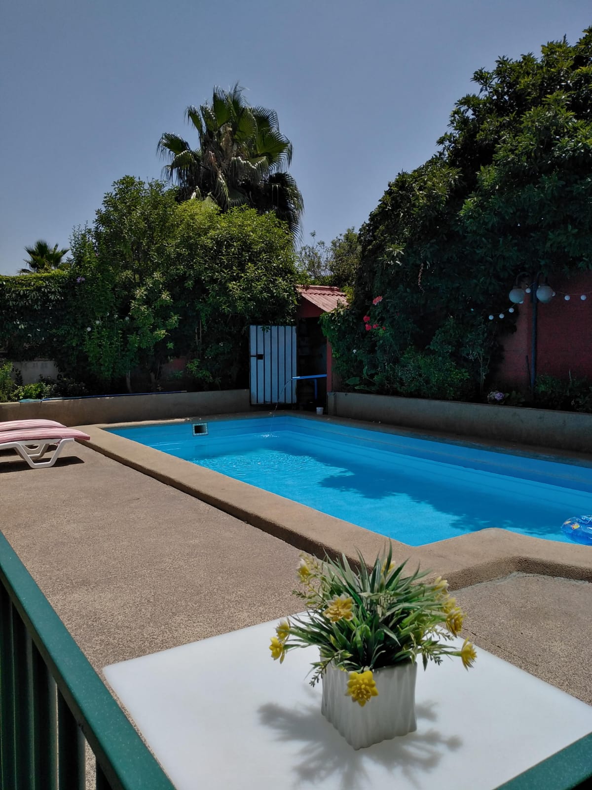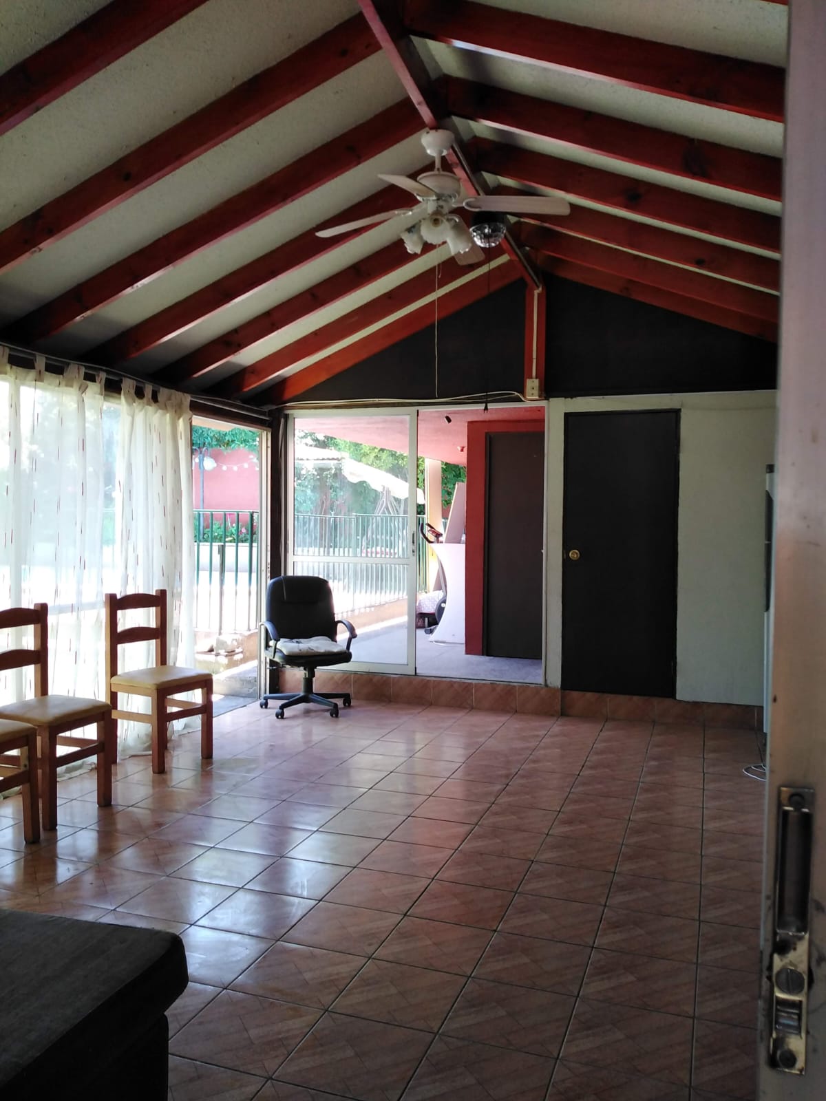 Casa de 2 pisos con 480 m2 totales, ubicada al interior del condominio, cuenta con 8 dormitorios, 5 baños, incluye dormitorio con baño de servicio, living comedor, walking closet, cocina amoblada, logia, bodega, quincho, piscina de fibra de 8×3 y estacionamiento para 3 vehiculos.