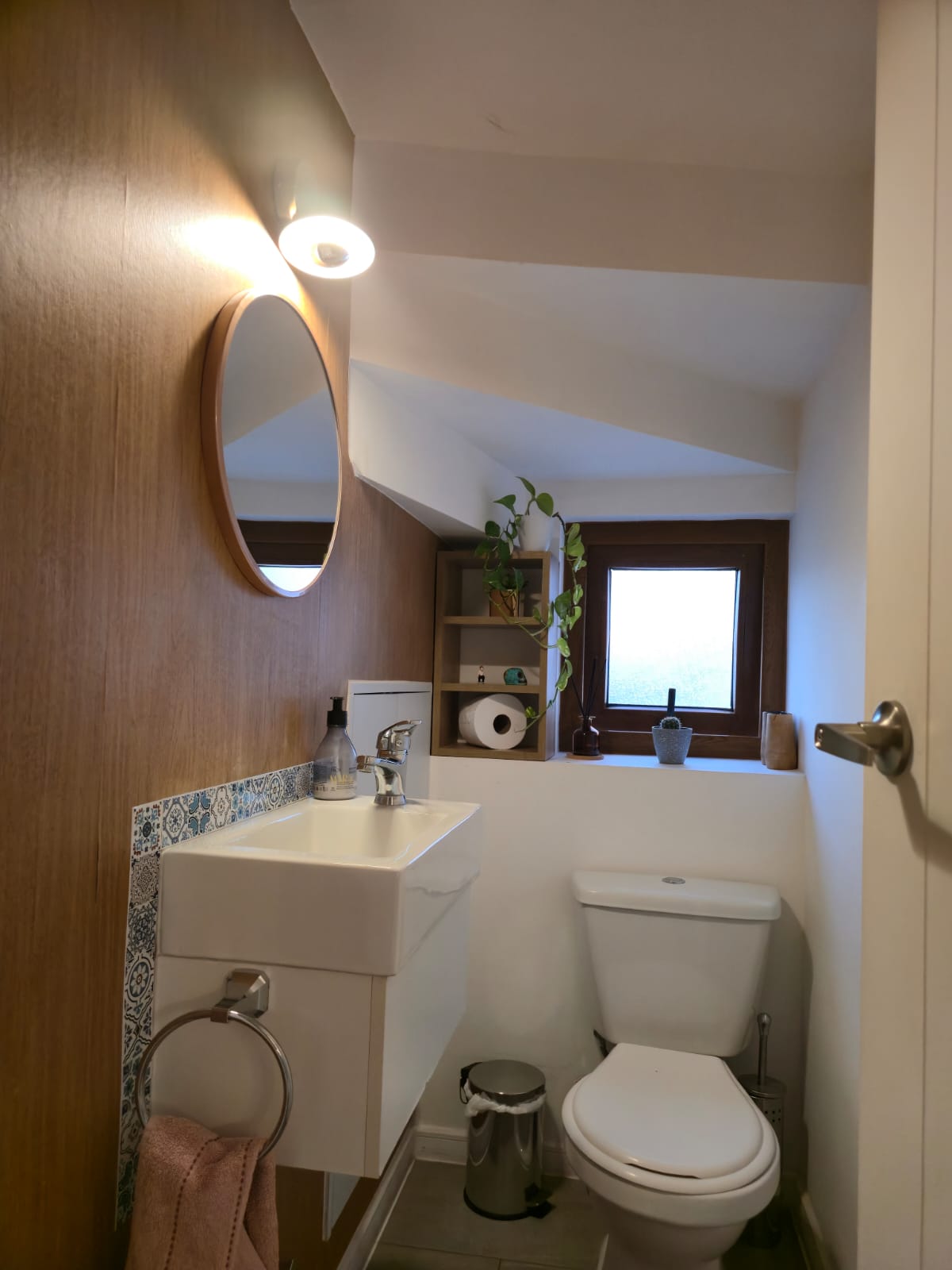 Cocina y logia con muebles a medida en madera de raulí
