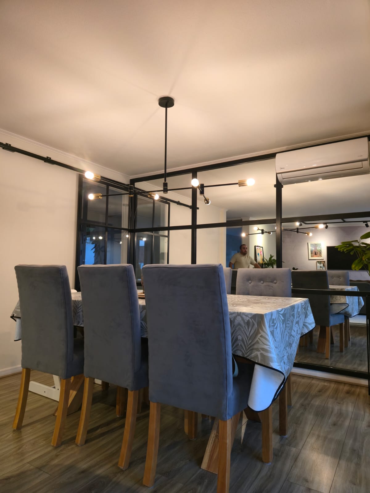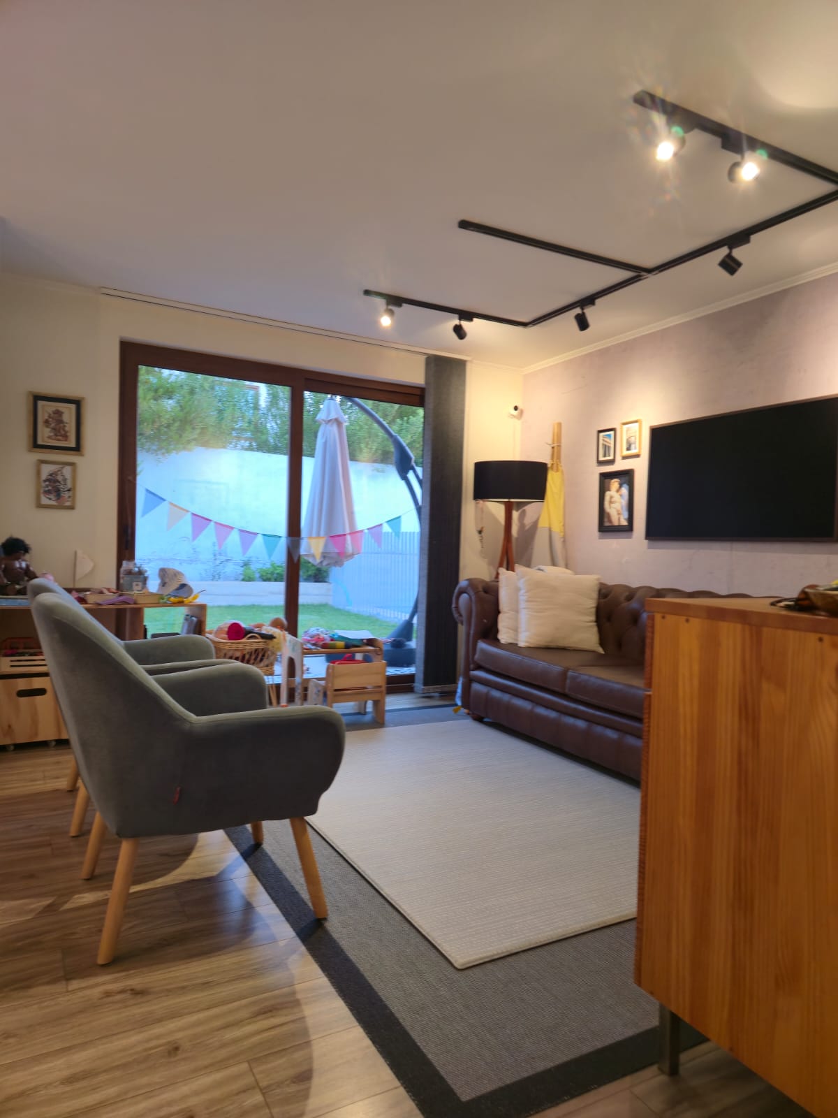 Sala de estar con pisos renovados