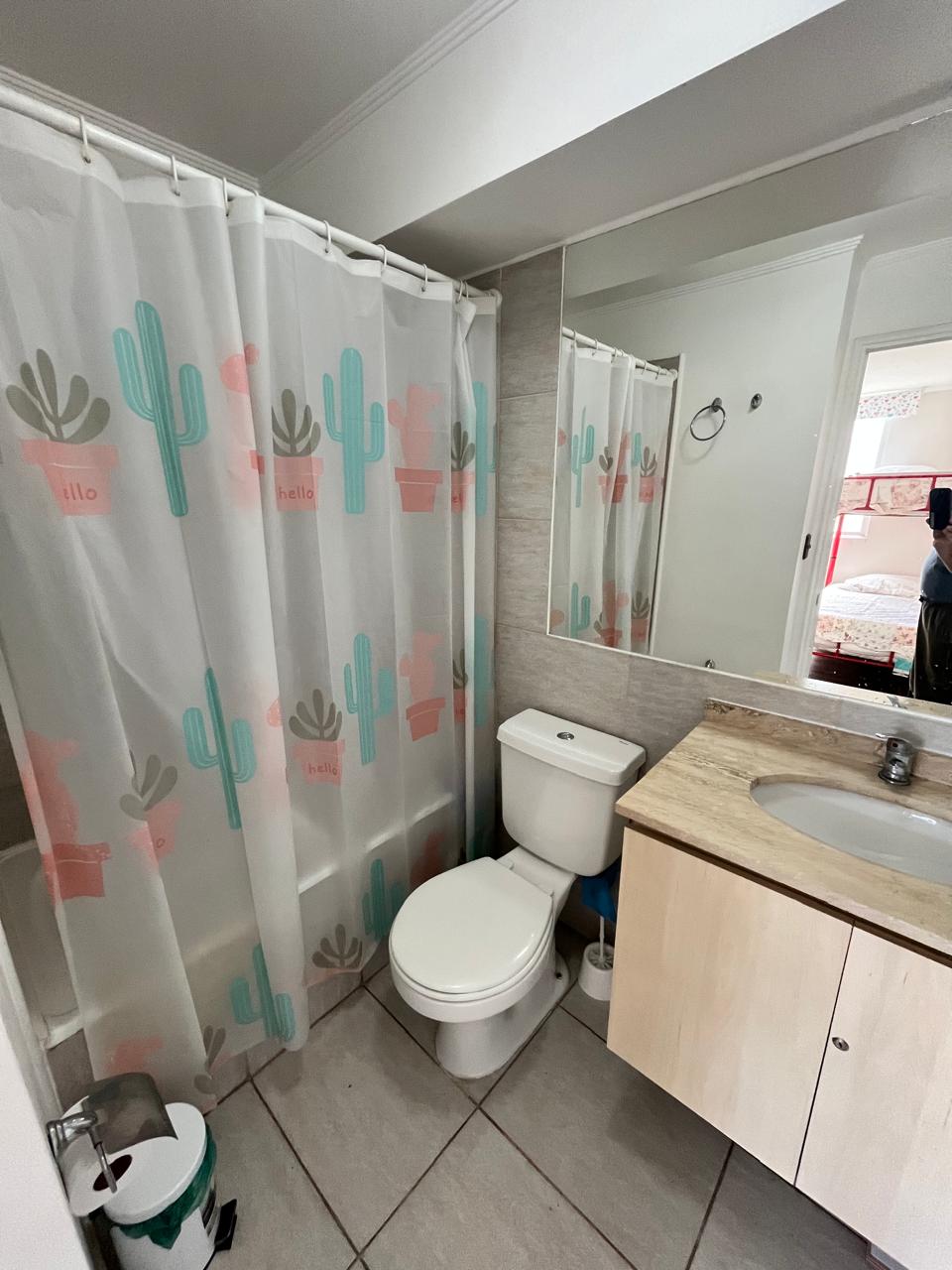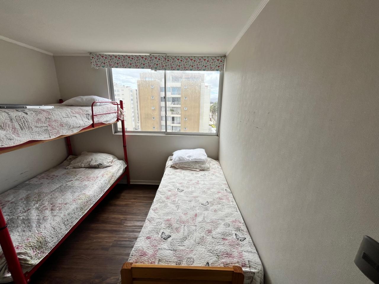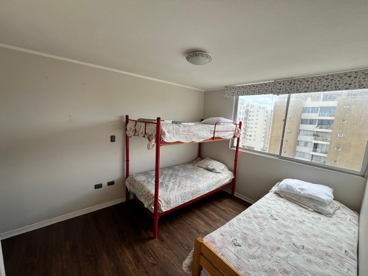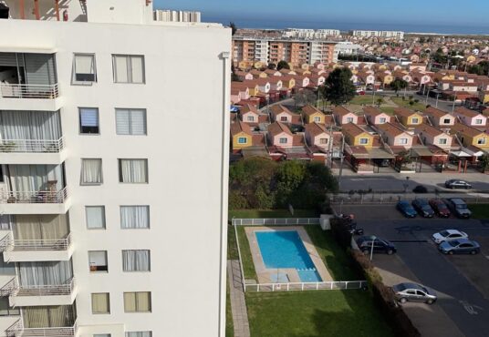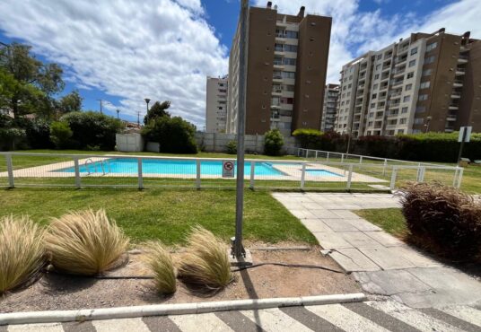 Además el edificio cuenta con: acceso controlado 24/7, áreas verdes, piscina, quinchos, sauna, y juegos infantiles de madera.