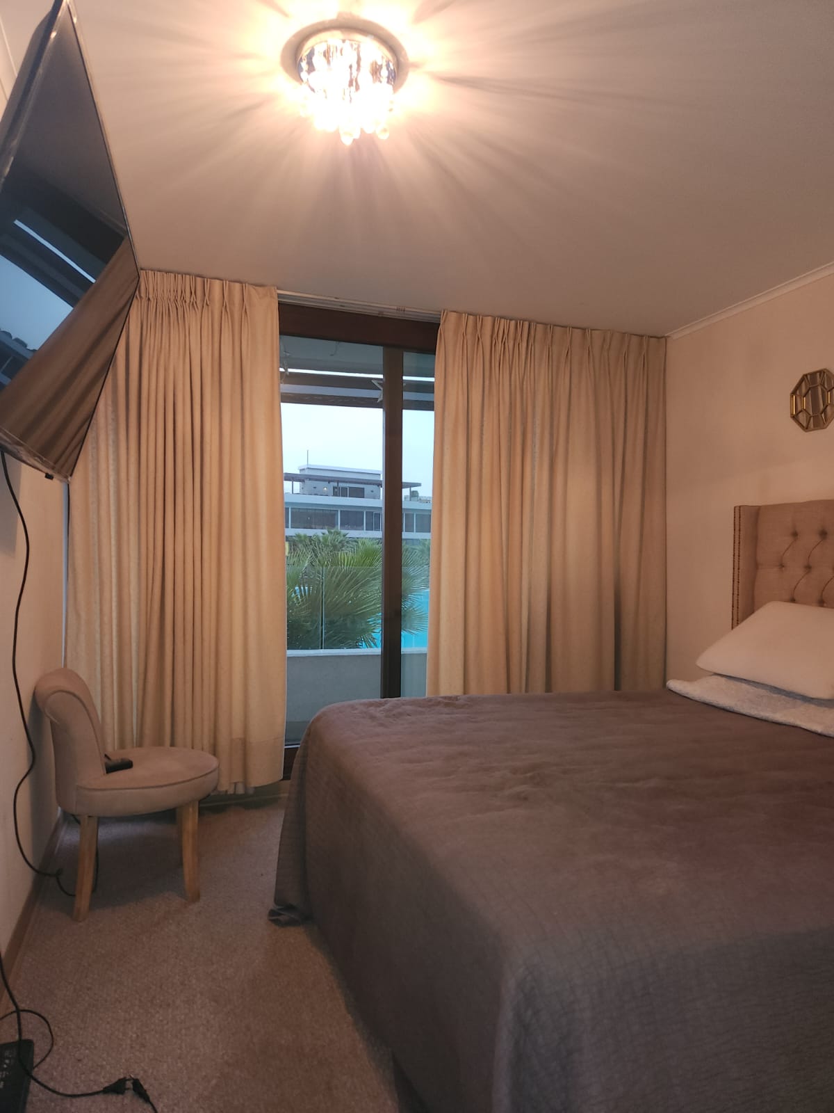 Se Vende Departamento ubicado en Lo Rinconada, Laguna lo Pirámide, Huechuraba. Propiedad con 134 m2 totales, cuenta con 3 dormitorios, 3 baños, cocinada cerrada amoblada, living comedor, espacio para lavadora, termopanel, terraza con persianas de vidrio , de 16 mt con vista a la laguna, navegable, piscina , áreas comunes con salones de multiuso, juegos infantiles, circuito de caminata, playa con arena blanca , gimnasio, sala gourmet, condominio de lujo, seguridad 24 hrs. estacionamiento propio y bodega. además de estacionamiento de visita interior , conserjería 24/7.